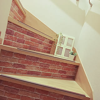 レンガ調壁紙 階段の壁 ステンシル 部屋全体のインテリア実例 19 06 27 07 40 01 Roomclip ルームクリップ